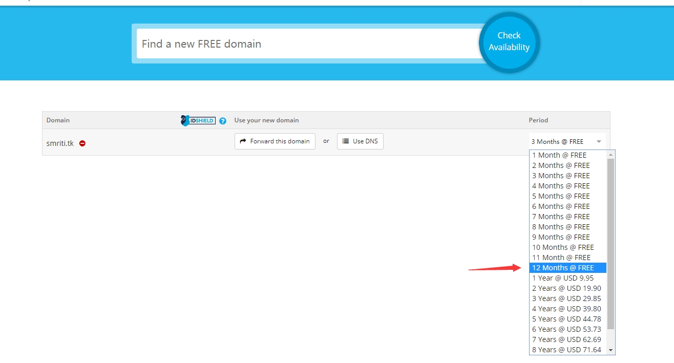 随便选择一个,“Get it now” 即可比如我选择TK域名,然后进入我的购物车,选择免费12个月,如下图: